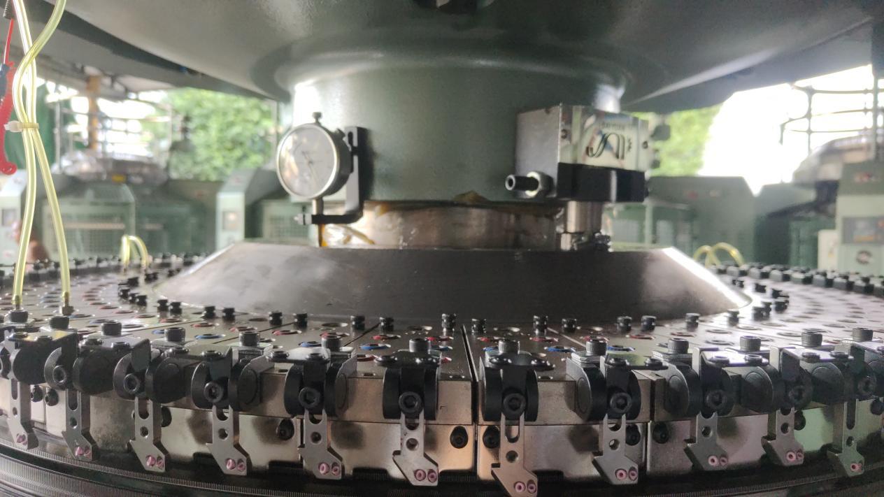 The shortened distance designing between gathering axle and spreading axle reduces loss of fabric edge. This improves the using rate of the cloth.Single adjusting key per feeder on Double cylinder Circular Knitting Machine